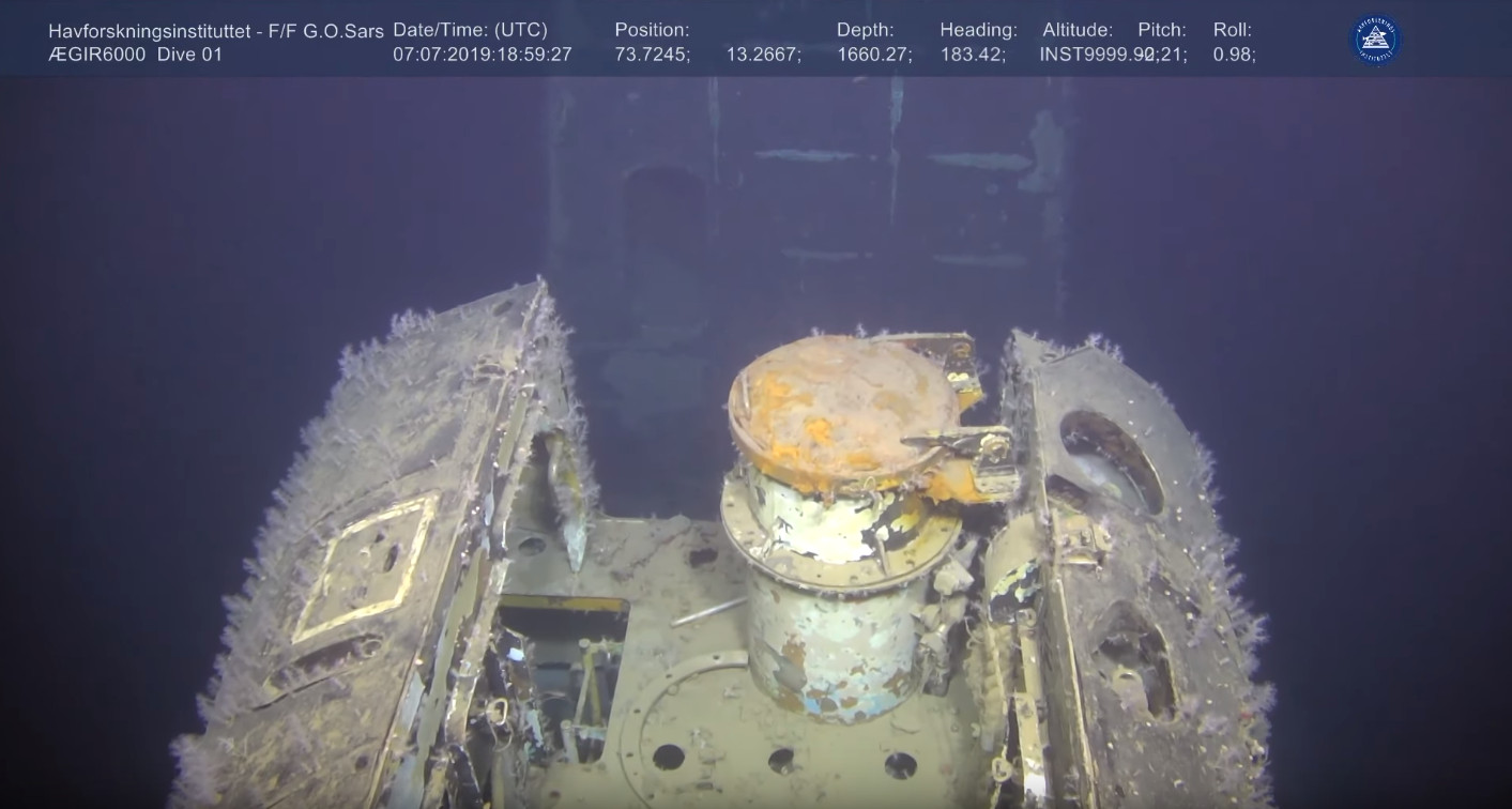The Norwegian Institute of Marine Research (Havforskningsinstituttet) published a video of the wreck on 8th July 2019 using footage from the Ægir 6000 Remote Operated Vehicle (ROV).