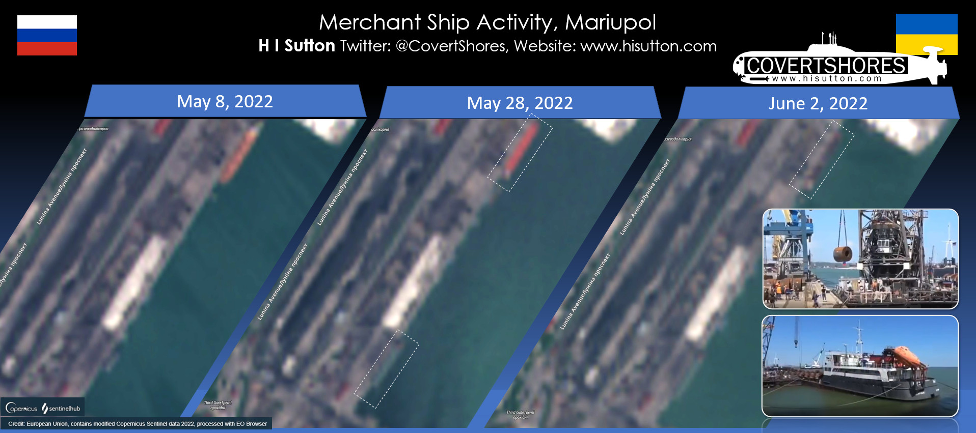 There has also been a resumption of merchant vessel traffic in Maripol, east Ukraine. The city is now under Russian control. It is known that some of the vessels are loading steel, and shipping it to Russia.
