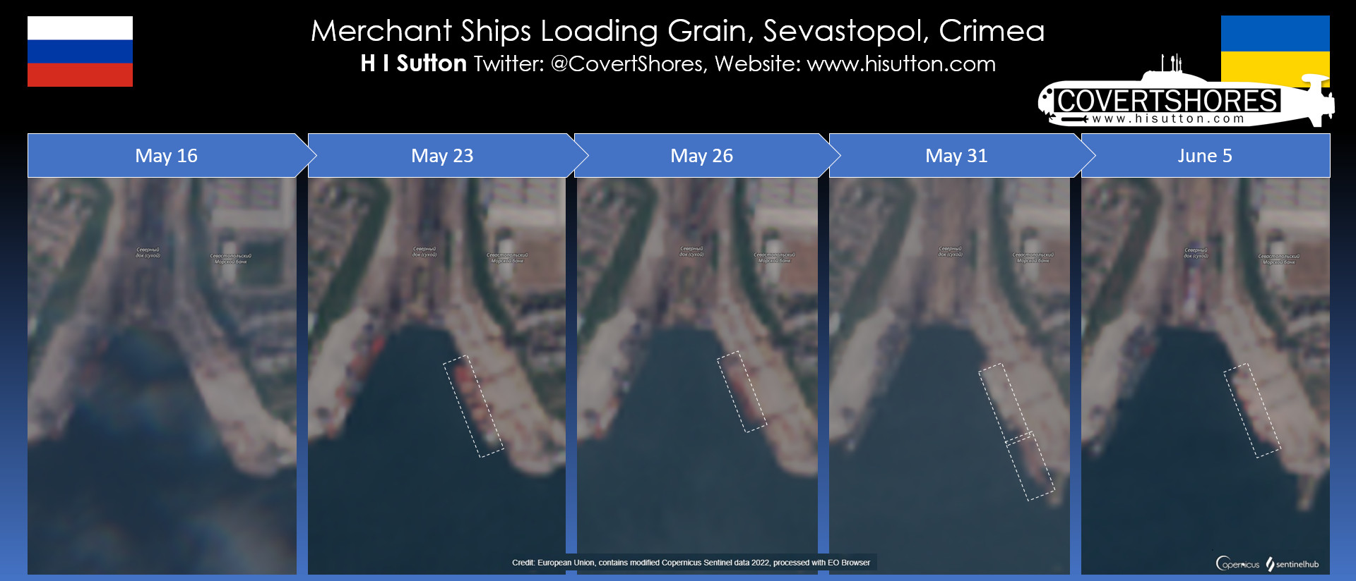 Now Russian ships are loading with grain in Crimea. We can see and track this via OSINT, similar to how we track naval movements.