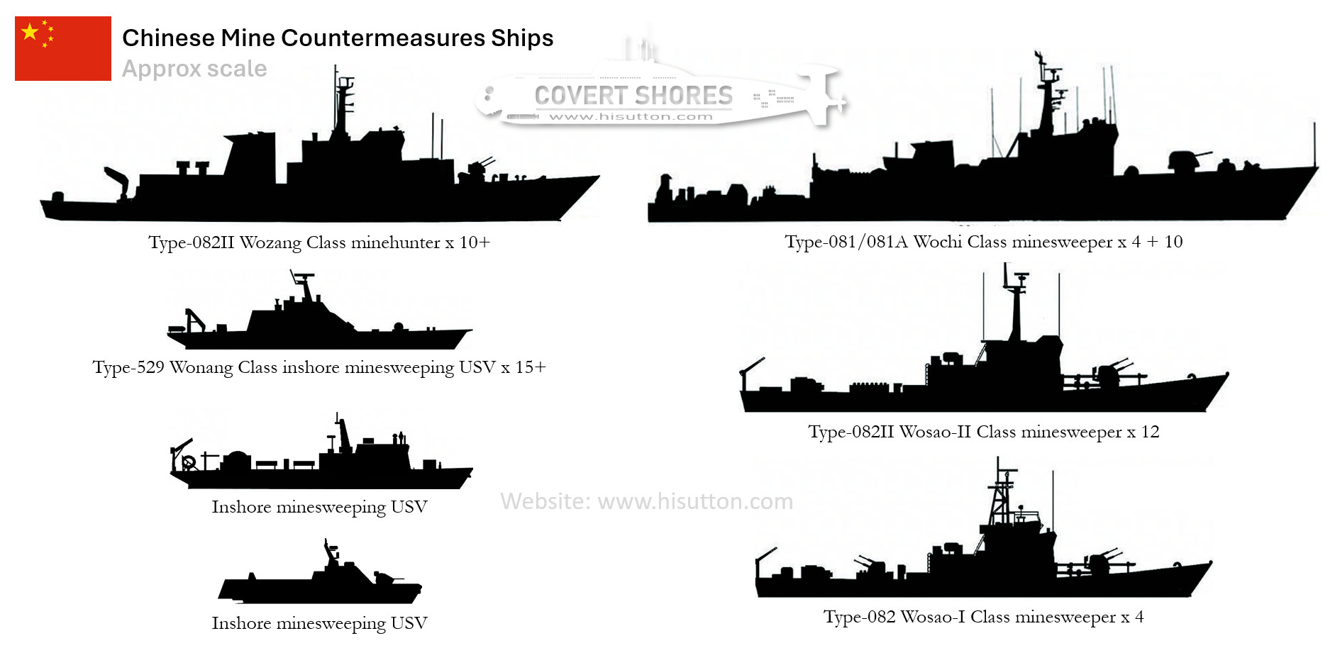 Mine clearing is inherently unglamorous (clearance divers may disagree!) and dangerous; as the saying goes, any ship can be a minesweeper, once. Naturally mine warfare vessels are divided into different roles and methods. China’s fleet, being the largest, has plenty of variation.